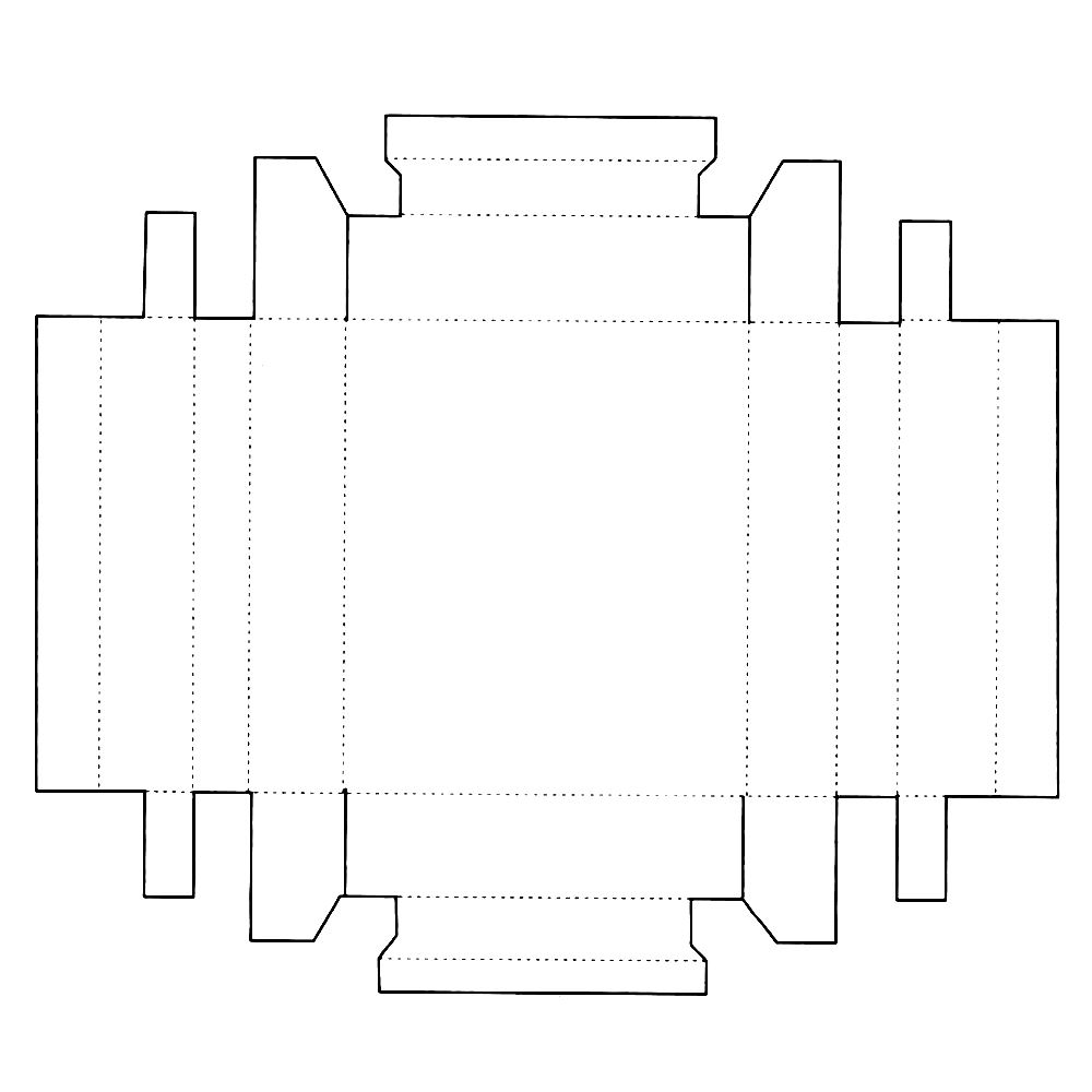 Простая универсальная конструкция для товаров весом до 1,5 кг, которая собирается без клея за счет взаимной фиксации боковых клапанов.