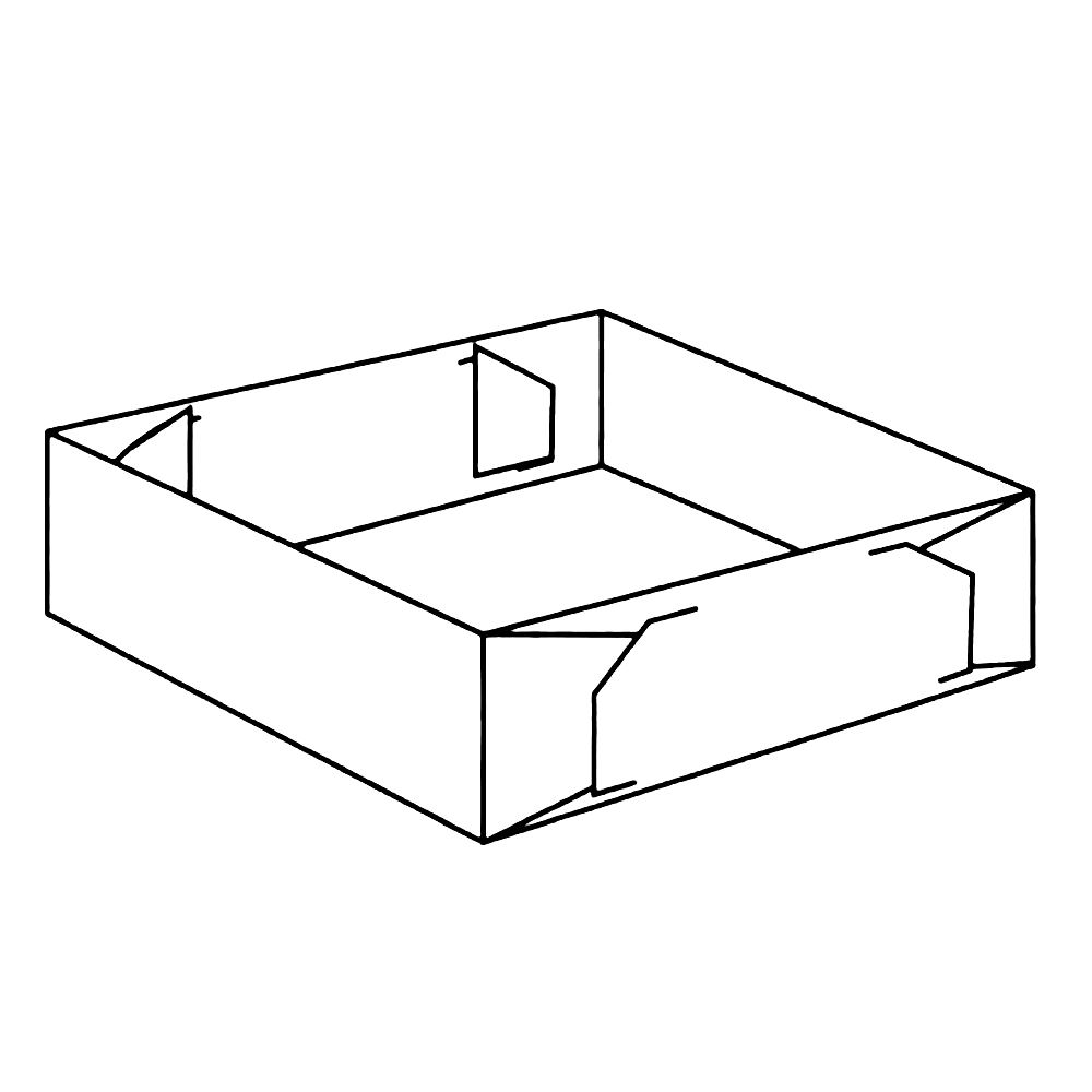 Надежная упаковка с усиленными боковыми панелями. Дополнительные клапаны загибаются внутрь, укрепляя стенки и увеличивая несущую способность лотка до 2 кг без использования клея.
