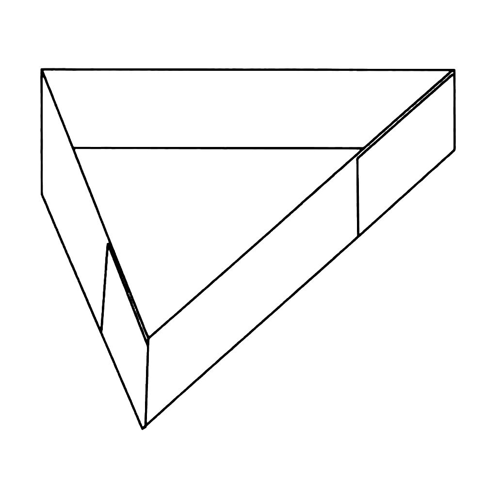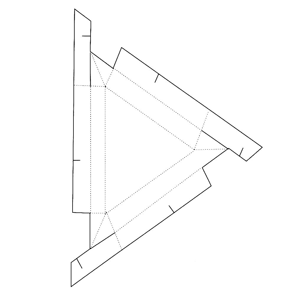 Специализированная упаковка треугольной формы, повторяющая форму продукта для экономии места и эргономичной выкладки. Конструкция собирается путем складывания по линиям биговки с фиксацией боковых панелей.